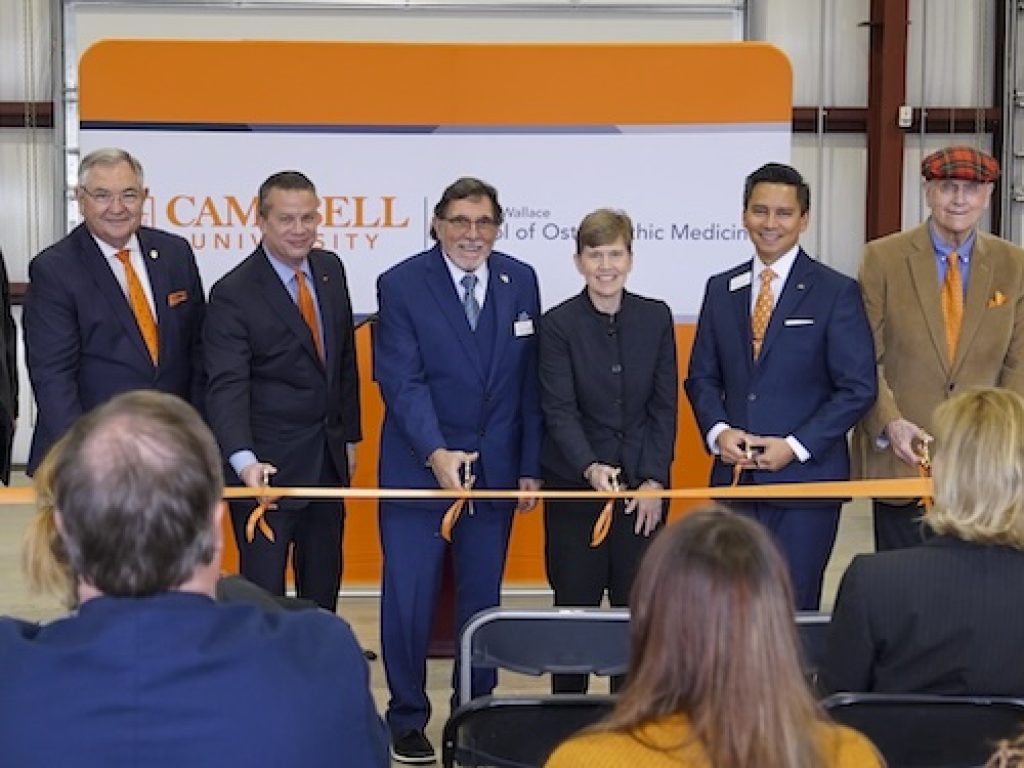 Kessler, now dean of the Meritus School of Osteopathic Medicine in Hagerstown, Maryland, returned to Campbell on Friday, Nov. 21, to help cut the ribbon on a 6,000-square-foot station house, which will be home to four Mobile Health and Education Clinics, delivering crucial healthcare services to migrant farmworkers in Harnett, Duplin, Johnston and Sampson counties in eastern North Carolina. The station, too, includes three offices for staff, a large storage area for supplies needed for the units and a meeting room.