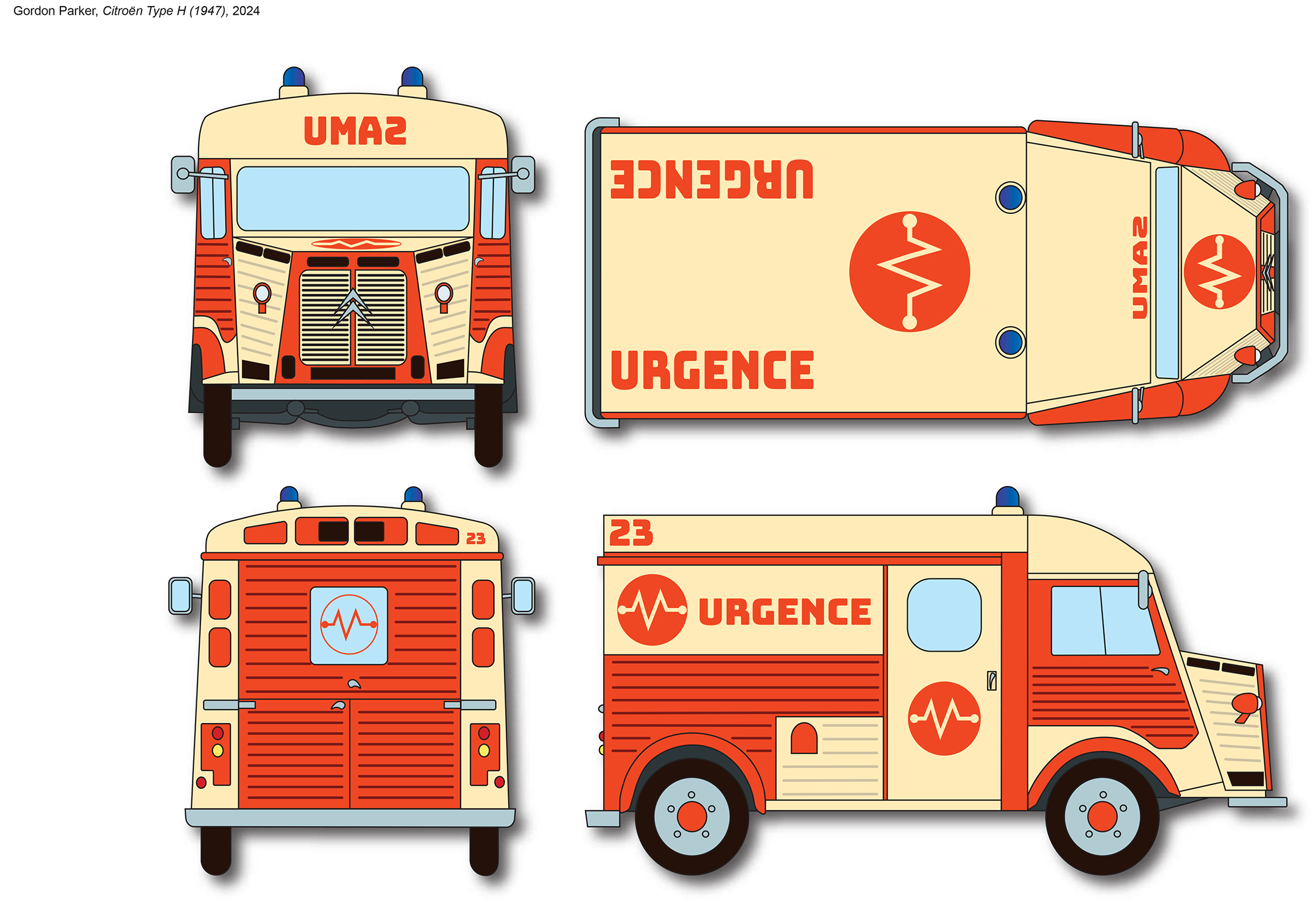 “Gordon Parker chose the masterpiece of the French automotive industry, Citroën Type H from 1947,” said Mraović. “This iconic van was designed by one of the most influential car designers of all time, Italian Flaminio Bertoni. Gordon’s design for the French urgent medical help van is very friendly and approachable.”