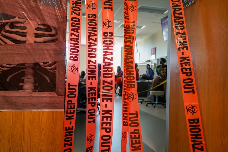 Campbell healthcare students walked beyond the caution tape, into dark rooms, where ghosts hovered and witches lurked. Unmistakably Halloween.