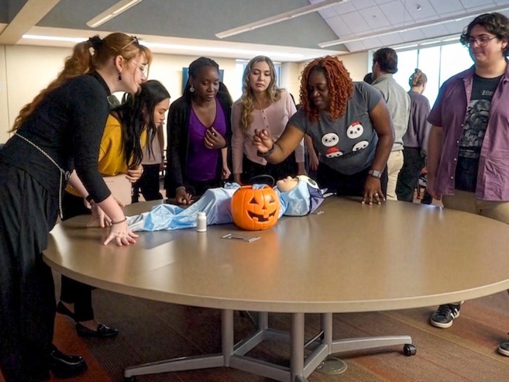 The students created case studies and designed unique health-related contributions, all in the Halloween spirit. Each healthcare discipline decorated a room, and some students, faculty and staff showed up in costume.