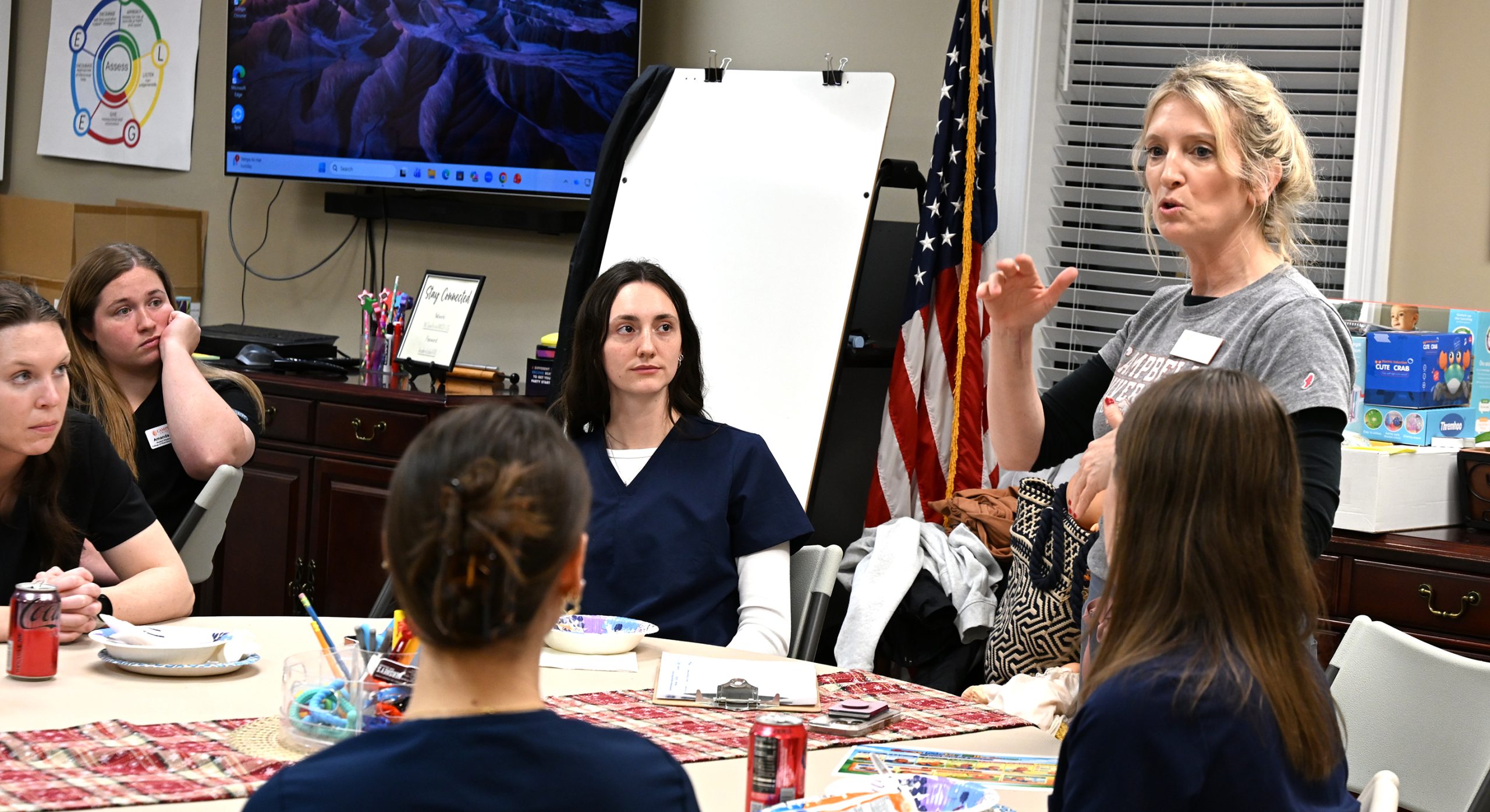 “I was in awe of the energy in the room,” Turlington said. “The Campbell students brought such excitement, and seeing us all learn from one another reminded me how powerful collaboration can be. The way infant teachers — with their real classroom experience — and students — with their knowledge of early physical development — shared ideas and learned together made strategies for infant development truly come alive.This energetic, interactive, hands-on training will have a lasting impact.”