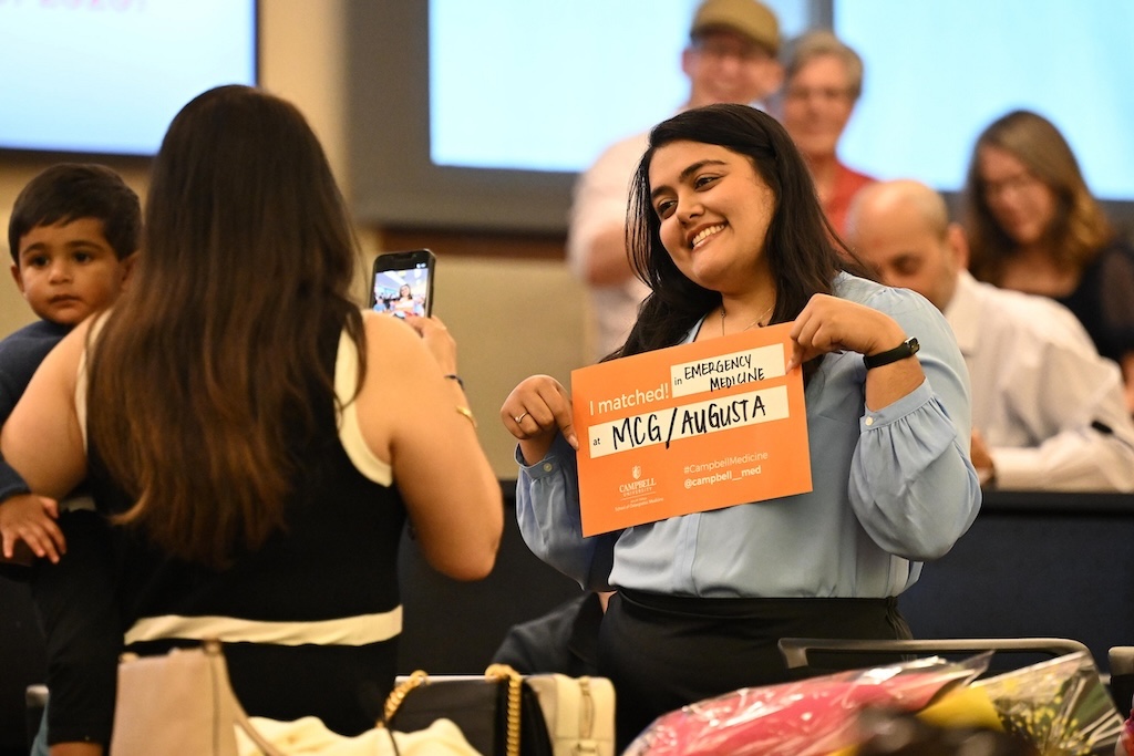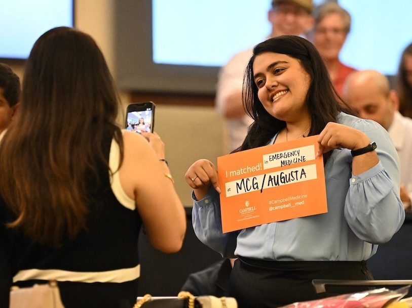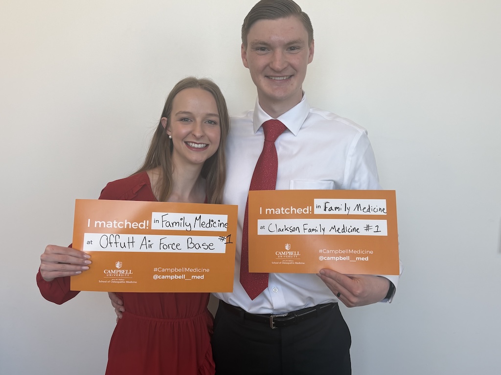 CUSOM, Taylor said, felt just like family. As a student, Taylor for the past two years did clinical training at Campbell partner UNC Health Blue Ridge in Morganton. “I know they’re celebrating for us today, too, and we can’t wait to go back and celebrate with them,” Taylor said.