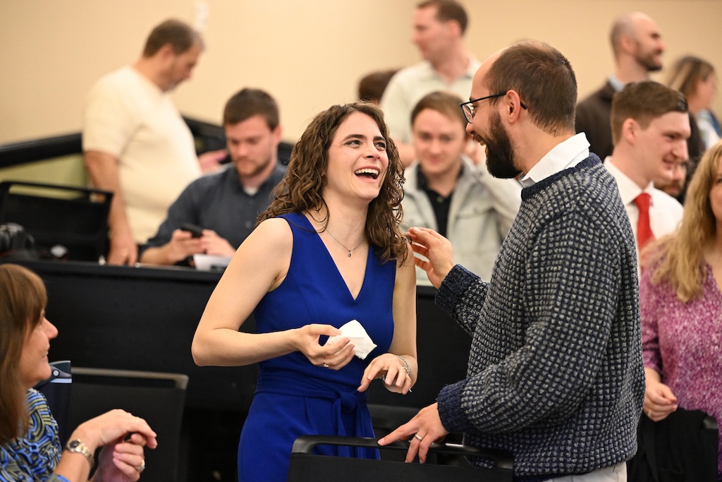 Student Drs. Christina Hardin and Ryan Taylor, surrounded by a large contingent of family and friends, sat quietly in a lecture hall inside the Campbell University Jerry M. Wallace School of Osteopathic Medicine (CUSOM).