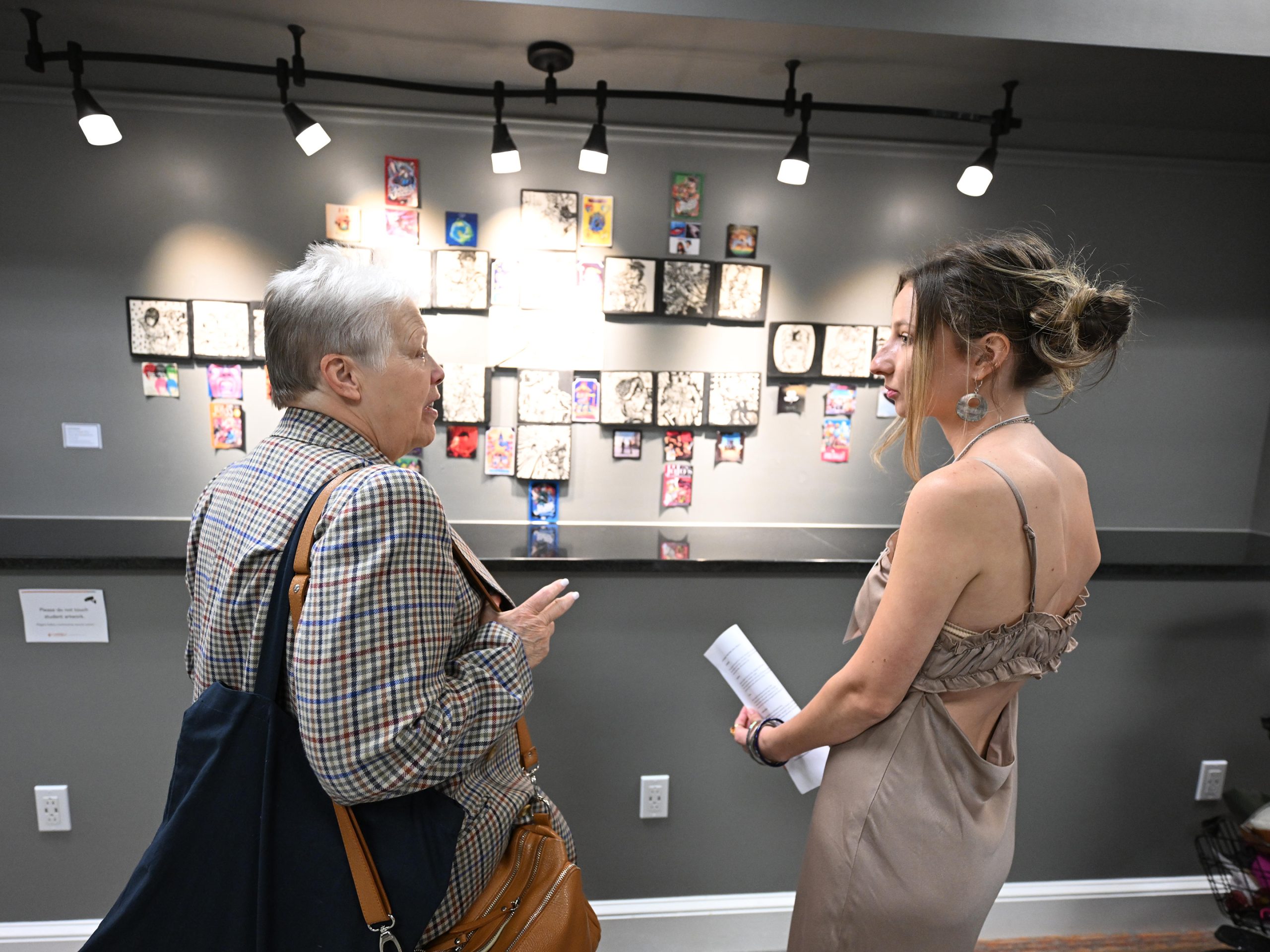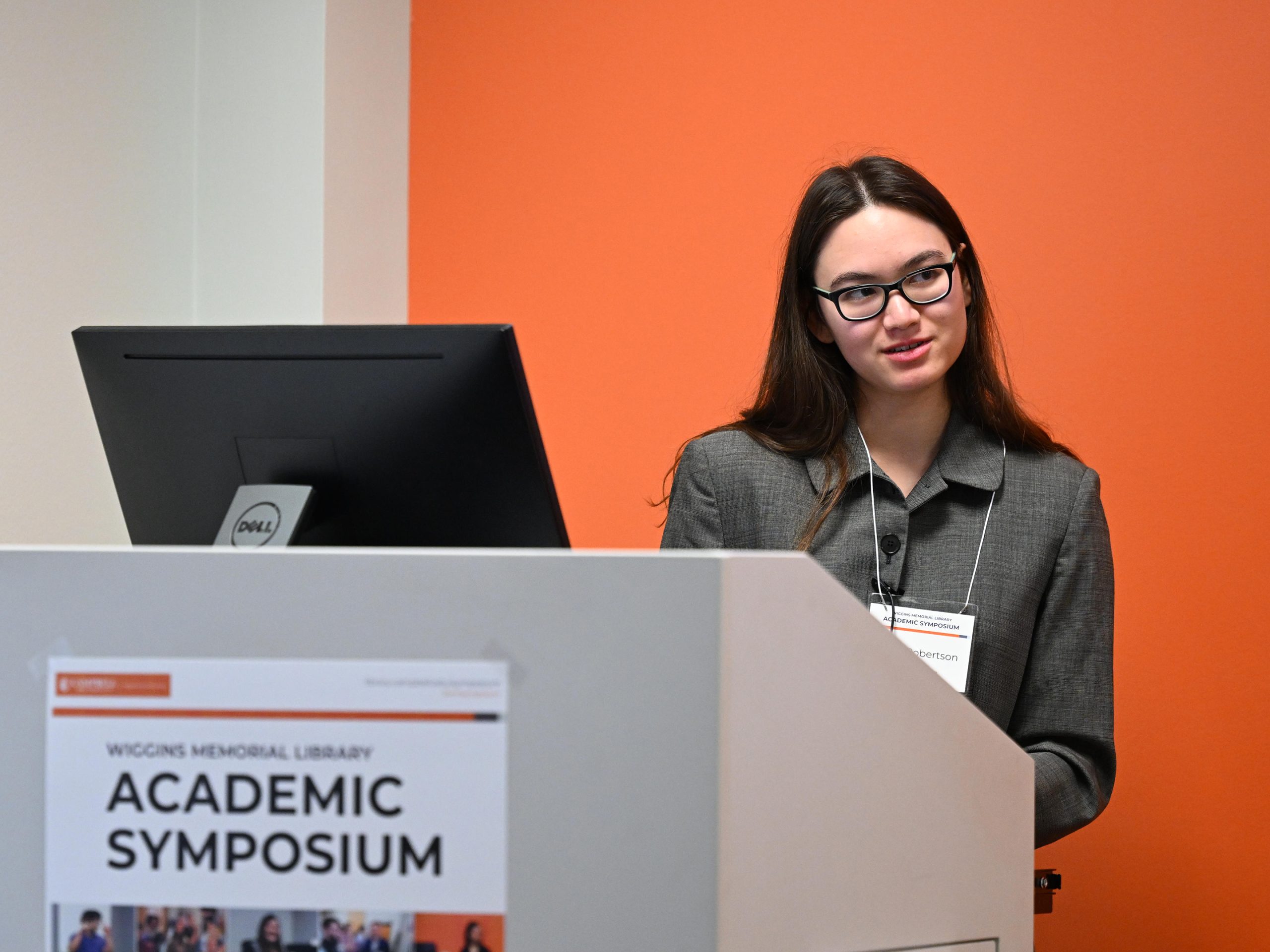 Oral presentations were delivered in Wiggins Memorial Library throughout the morning on Tuesday, and the student art exhibit began in the afternoon. Coral Burke’s large-scale ceramic mosaic reimagining characters from the Japanese manga “JoJo’s Bizarre Adventure” took home a “High Merit” honor with works by Kayla Caulk and Susannah Young earning Merit awards.