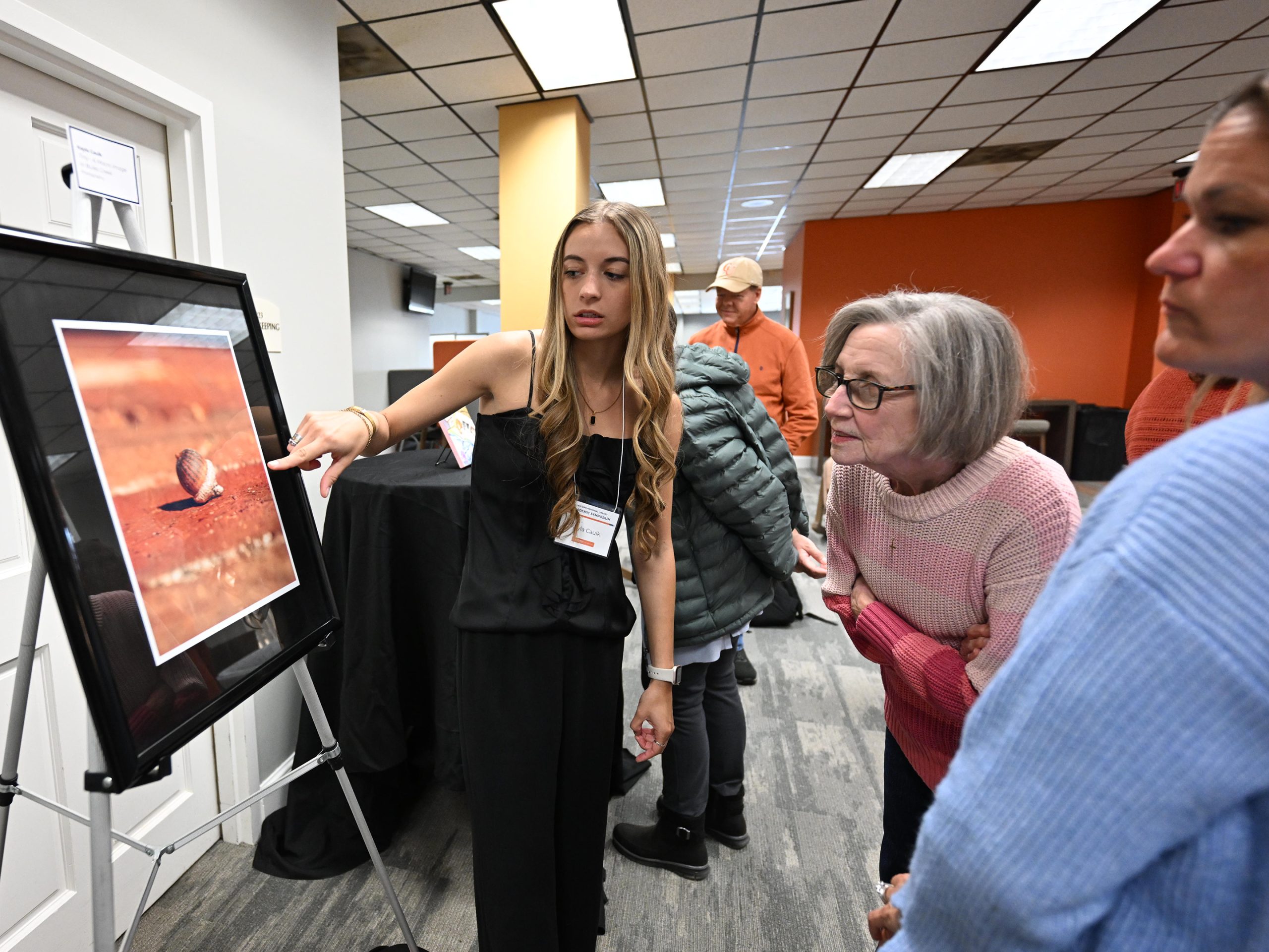 Poster presentations were on display later in the afternoon in the Oscar N. Harris Student Union’s Keith Family Ballroom. Ainsley Forest’s research on vaping and its increased risk of causing blood clots examined a 45-year-old man with a recent history of heavy vape usage. Forest, a second year student in the Jerry M. Wallace School of Osteopathic Medicine, said she focused on the subject, because of vaping’s popularity and the lack of research that’s gone into its dangers.