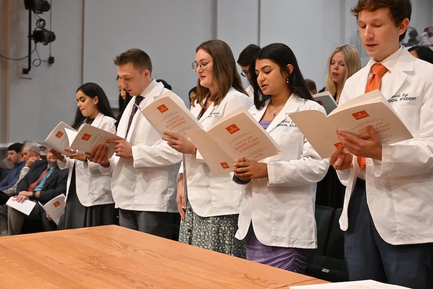 “It is time for us to formally recognize the dedication and perseverance that has brought you to this point,” he said. “The white coat you will don today symbolizes the responsibilities you will assume as future physicians and the trust that society places in you as healers. It’s a symbol of compassion, integrity and the pursuit of knowledge.”