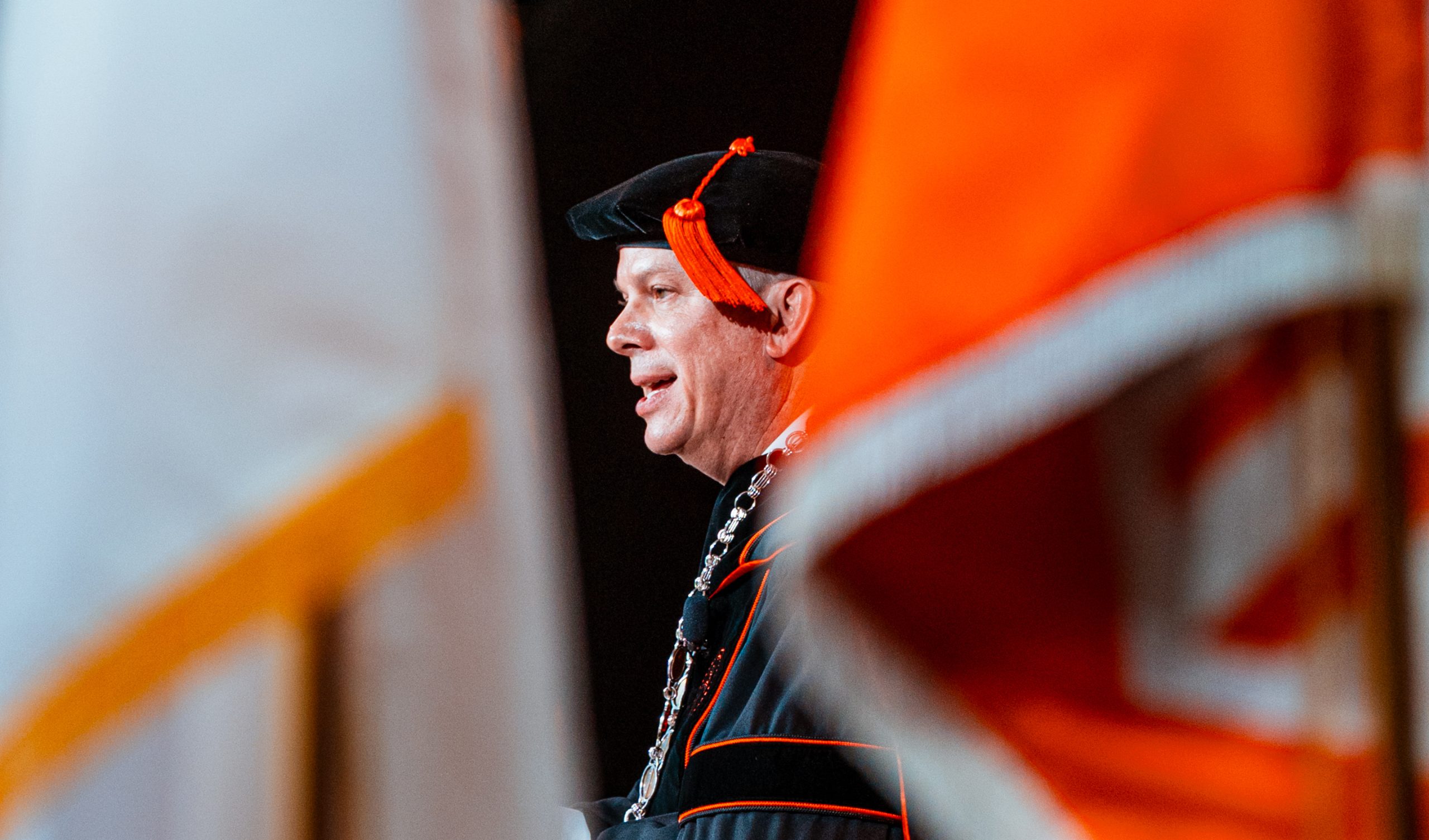 “This must have been some serious extra credit,” he said with a laugh. “But whatever got you here today, I will repeat the commitment that I made the day I was first named president. You, our students, are our most important constituents. You are our No. 1 priority. You are the reason that we will scrap and fight and claw to strengthen this university every day during my administration, just as those before us have done for 139 years. You, my friends, are our reason to be.”