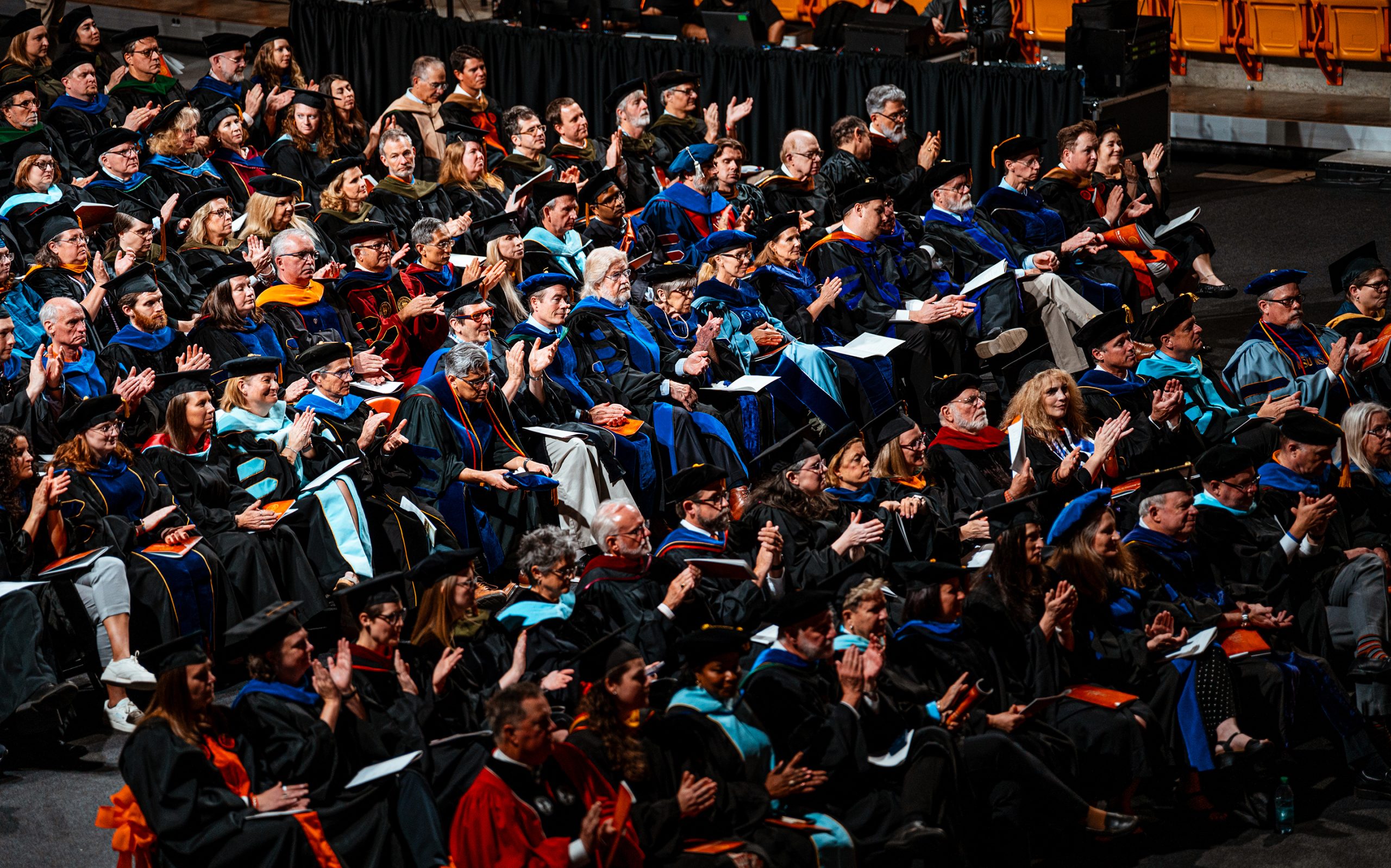“Ours is a world filled with uncertainty,” he said, referencing a current war, global financial instability, pandemic recovery, declining trust in institutions of higher education and falling membership in churches. “Some question the very value of a college education. Artificial intelligence causes us to question what we see, what we read and what we once thought we could understand as the truth. Social media has, without a doubt, dumbed down our national discourse. These are challenging times, my friends.