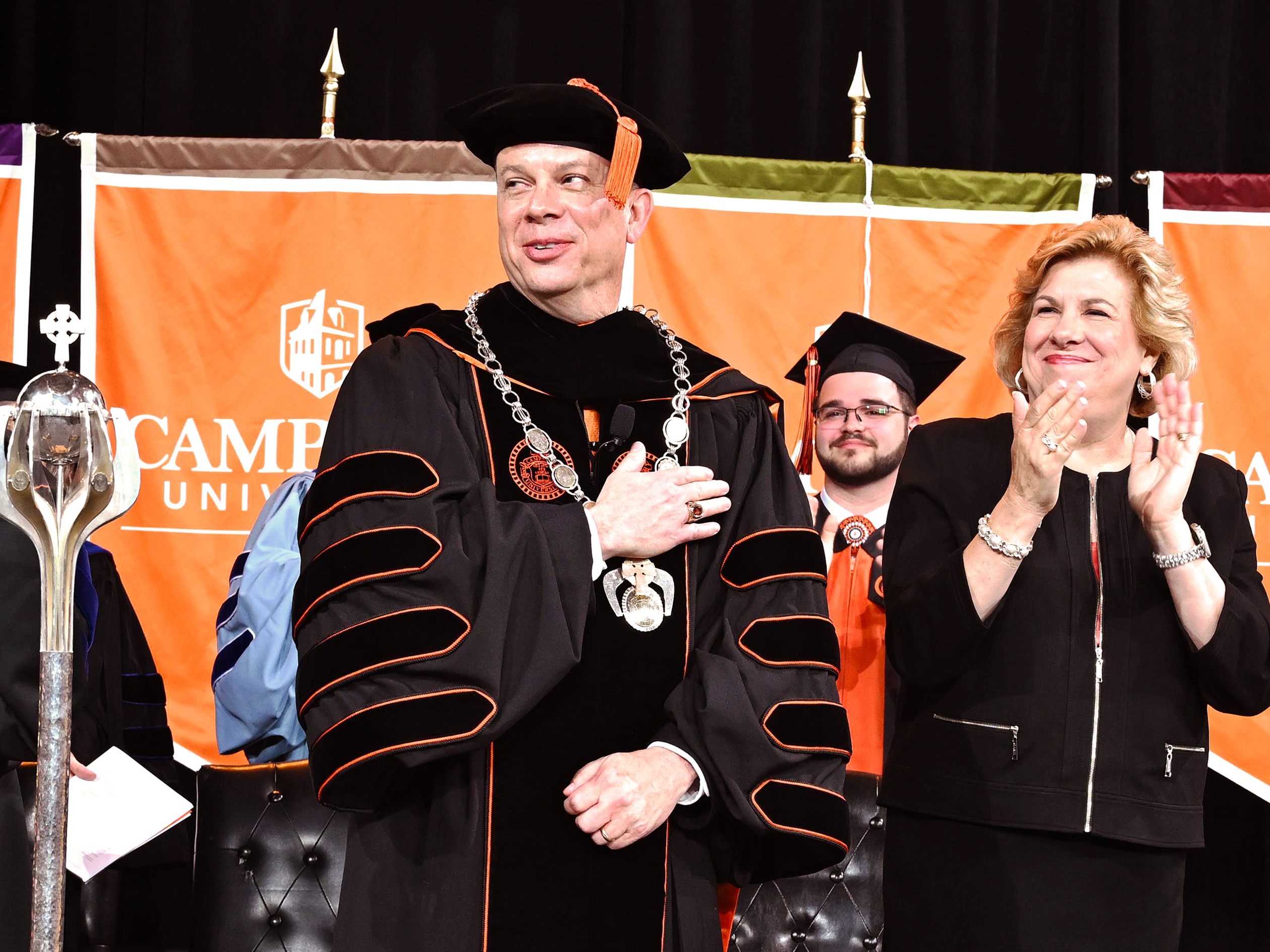 President Dr. William M. Downs called for Campbell to rededicate itself to a “powerful and world-changing mission” on the day he was formally invested and sworn in as just the sixth president in the University’s 139-year history on Friday.